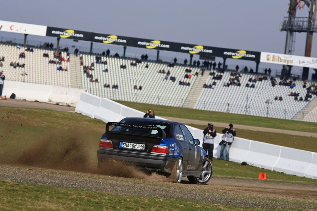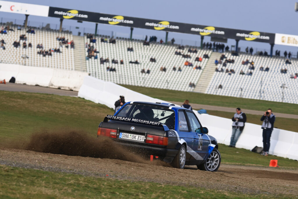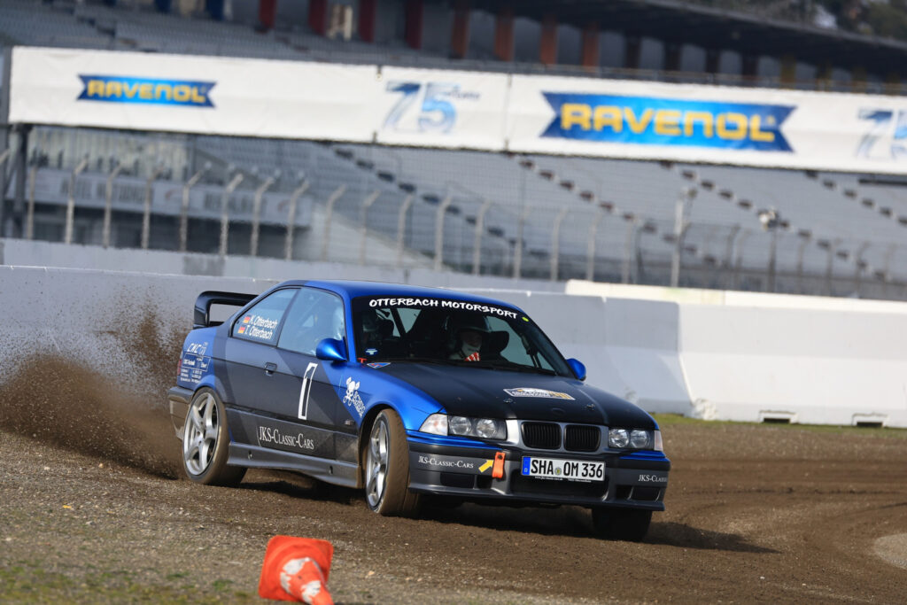 Vor dem Start war einiges los. Der E30 strahlt in neuem Design, der E36 wurde erst kurz vor der Rallye fertig, dazu aber später mehr. Die Rallye Nordbaden fand auf drei verschiedenen Wertungsprüfungen (WPs) á fünf Kilometer statt. Eine WP wird dreifach, die anderen doppelt befahren. Somit standen sieben Wertungsprüfungen auf dem Programm. „Die Wertungsprüfungen sind wie ein Labyrinth. Immer wieder geht es quer über die Grand Prix Strecke auf die engen Seitengassen und über spitze Kehren durch die Leitplanken, die kaum breiter als das Fahrzeug sind. Das ist alles sehr technisch und erinnert doch mehr an eine Slalom- anstatt an eine Rallye-Veranstaltung. Wir freuen uns jetzt aber schon auf die Rallyecross-Weltmeisterschaftsstrecke im Motodrom mit hohem Schotteranteil“ so Nico.